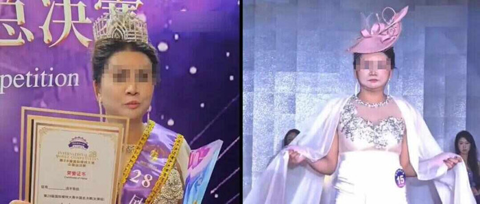 网络流传的相关视频显示,15号女选手是一位看起来年龄偏大的女士,头戴桂冠、身披冠军绶带、手拿冠军证书,在强光下独自走上T台,向观众与评委致谢。她的体态丰腴,步伐略显拘谨,但脸上写满了自信和骄傲。