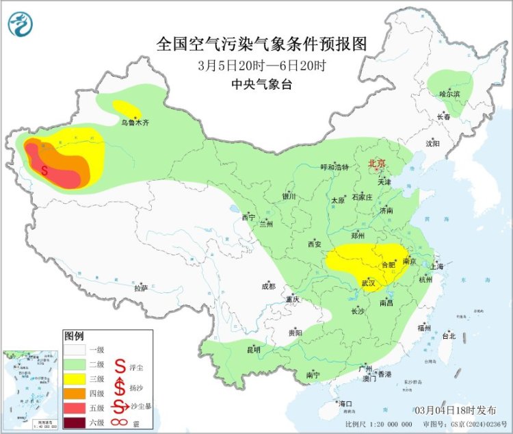 4日夜间至6日,受冷空气影响,大气扩散条件转好,华北、黄淮的霾天气逐渐减弱或消散;受传输影响,6日至7日,江汉、江淮西部等地的部分地区有轻度霾。